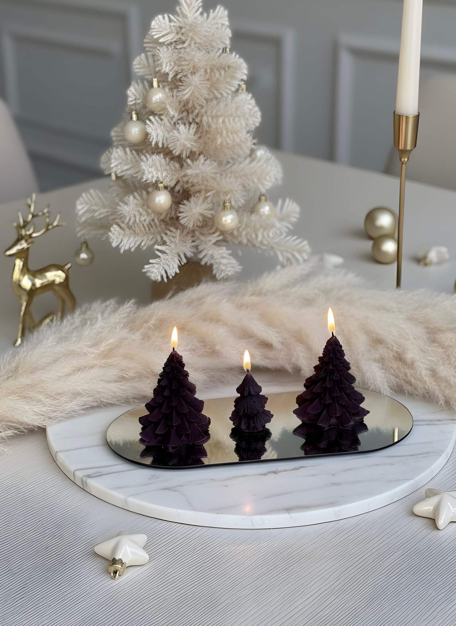 Minimal şıklık ve modern yılbaşı havasını bir araya getiren Midnight Pine Set, özel renk tonlarıyla her mekâna sofistike bir dokunuş katar. Her bir mum, çam ağacı yaprak dokusunu ince detaylarla taşıyan el döküm bir tasarım olup tamamen sertifikalı soya wax kullanılarak üretilmiştir.