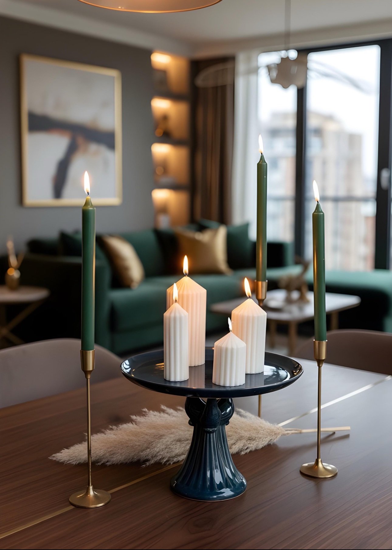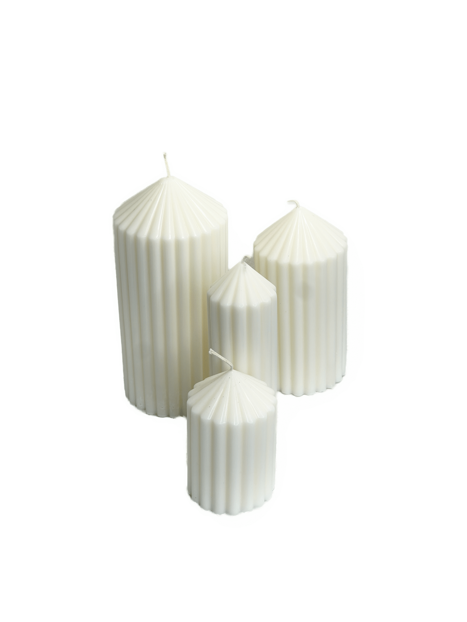 Dört farklı yükseklikte tasarlanan sütun mumlar; yemek masalarında, oturma odasında, giriş konsollarında ve özel davet düzenlemelerinde mükemmel uyum sağlar. Hem tek başına hem de bir arada sergilendiğinde modern bir kompozisyon oluşturur.