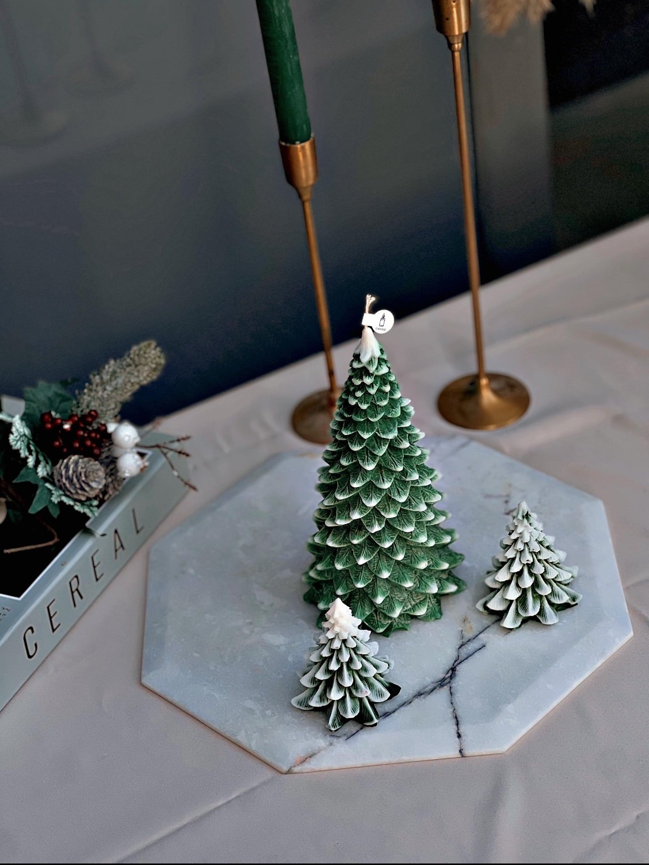 Yeni yıl ruhunu en doğal ve estetik hâliyle yansıtan Winter Forest, detaylı yaprak dokusu ve gerçek çam ağacı görünümüyle dekorasyonlarınıza sıcaklık ve şıklık katar. Her bir mum %100 sertifikalı soya wax ile elde dökülür; pürüzsüz yanışı ve dolgun formuyla hem işlevsel hem de dekoratif bir obje olarak öne çıkar.