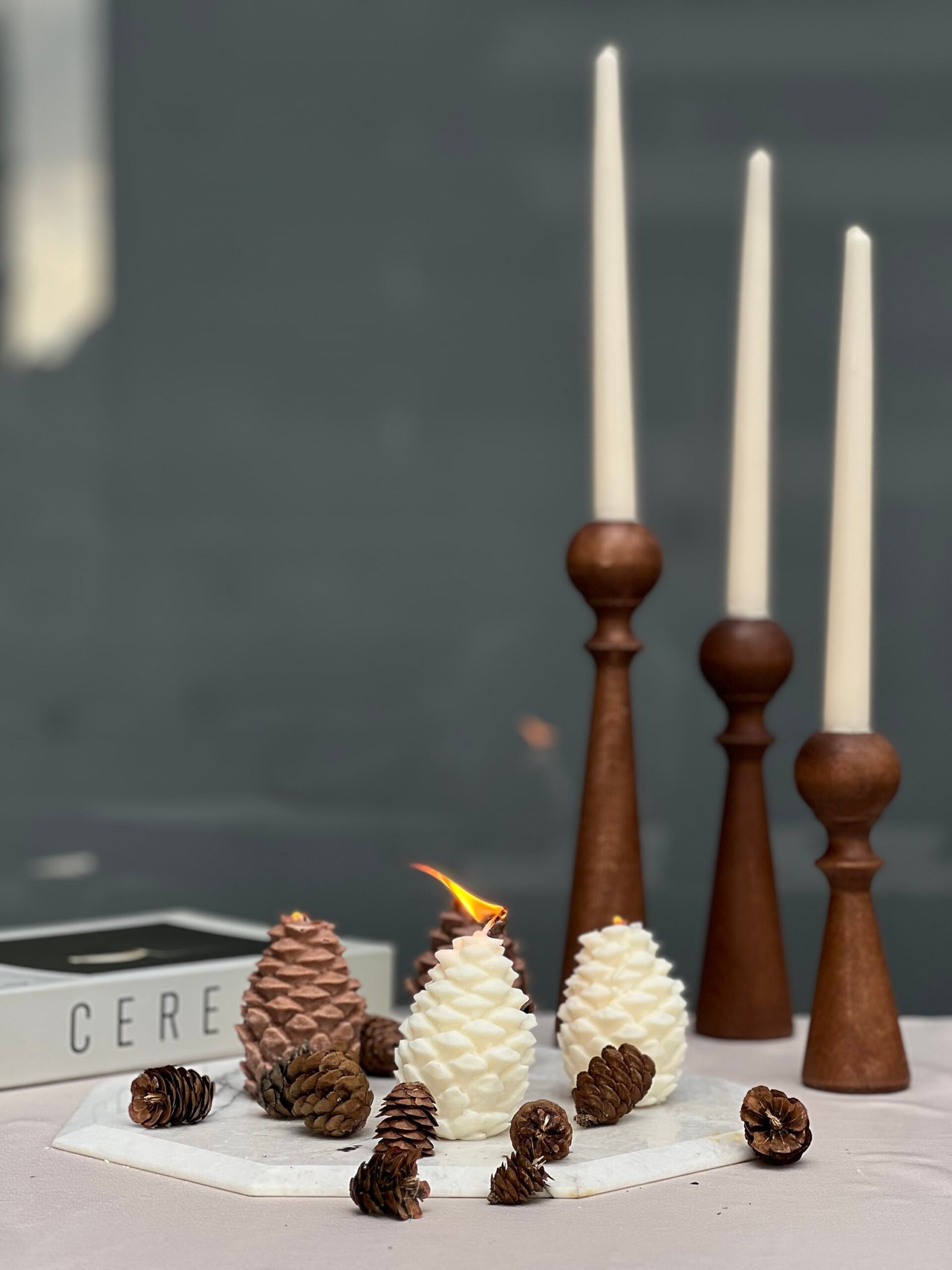 Kozalak mumlar; şömine kenarı, yılbaşı masası, salon dekoru veya hediye setleri için mükemmel bir tamamlayıcıdır. Sıcak kahverengiler ve soft krem tonlarıyla rustik, doğal ve minimalist dekorasyonlara zarif bir dokunuş katar.