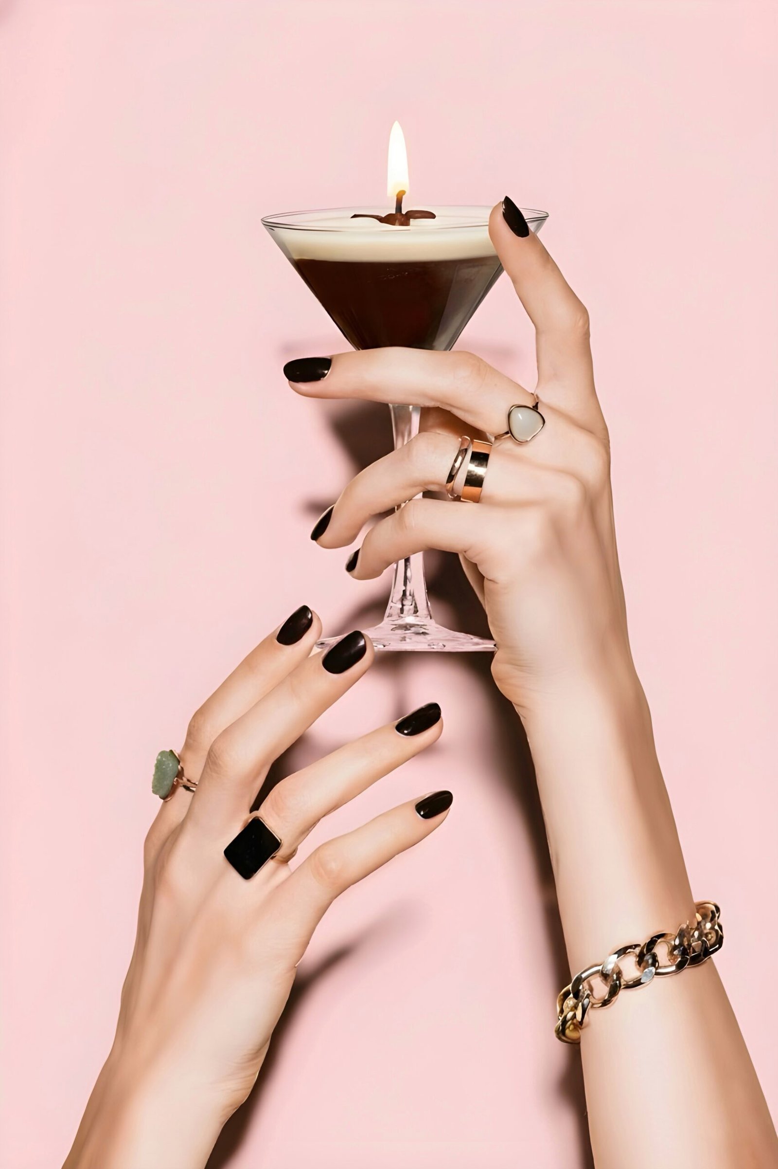 Modern ve sofistike görünümüyle öne çıkan Espresso Martini mum, kokteyl kadehi formundaki özel tasarımı sayesinde sıradan dekorasyonların çok ötesinde bir atmosfer yaratır. %100 sertifikalı soya wax kullanılarak elde hazırlanan bu mum, temiz ve uzun süreli yanışıyla hem ambiyansı hem de estetik algıyı yükseltir.
